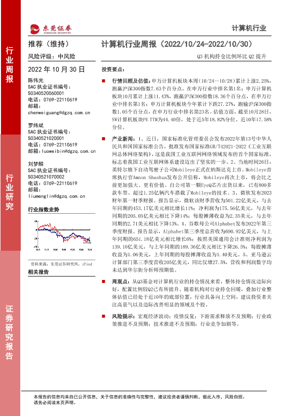 【东莞证券】【20221030】20221030-东莞证券-计算机行业周报:Q3机构持仓比例环比Q2提升-10页