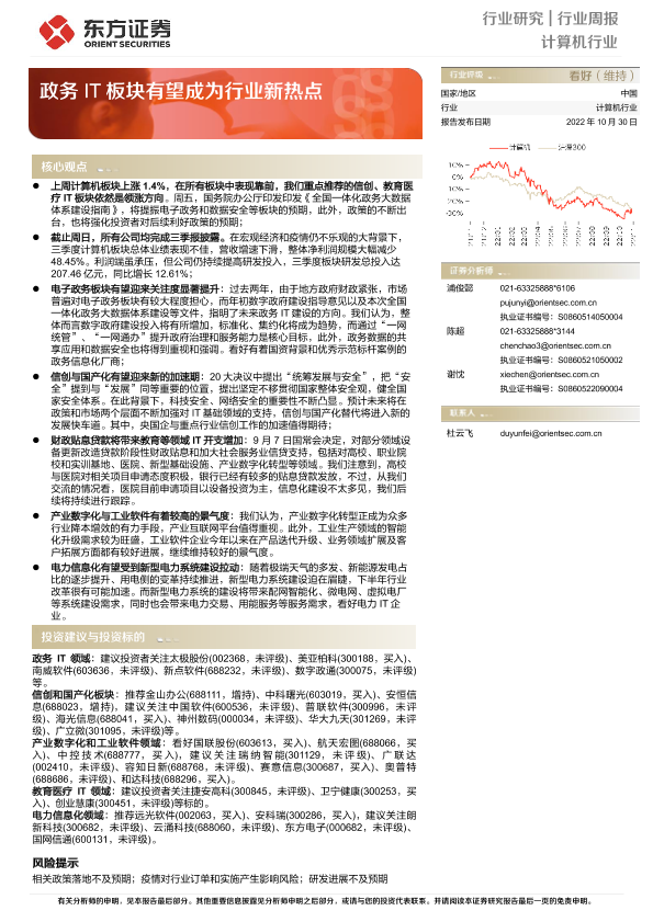 【东方证券】【20221030】计算机行业行业周报:政务IT板块有望成为行业新热点-11页