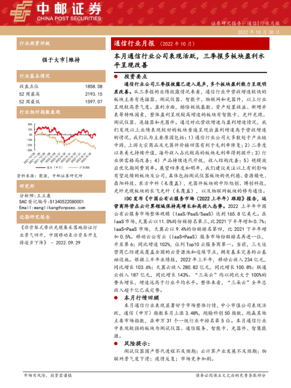 【中邮证券】【20221030】20221030-中邮证券-通信行业月报(2022年10月):本月通信行业公司表现活跃,三季报多板块盈利水平呈现改善-33页