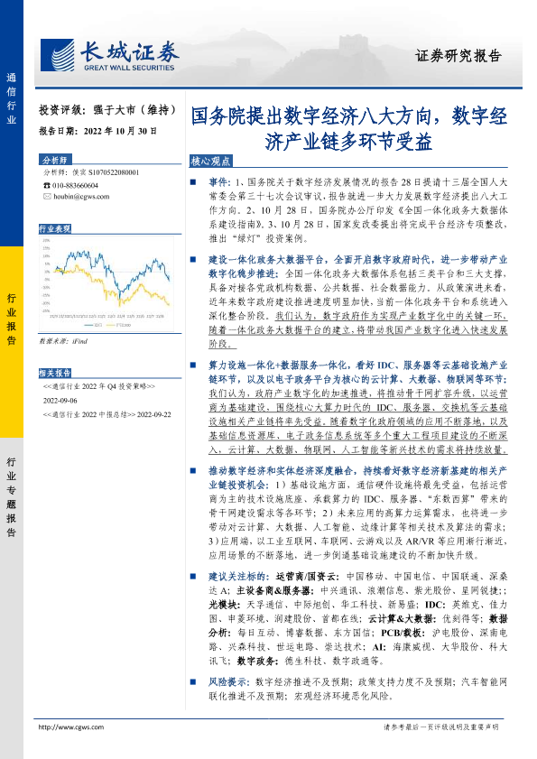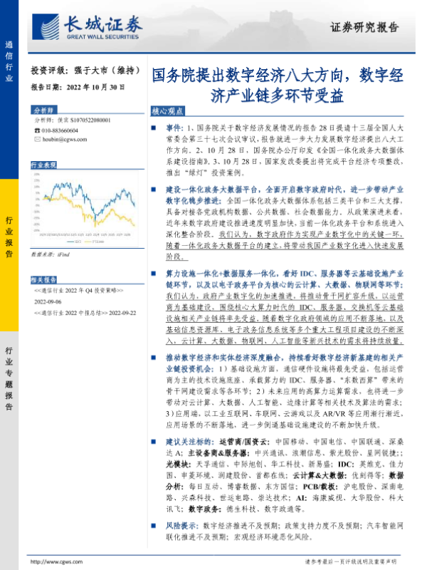 【长城证券】【20221030】通信行业:国务院提出数字经济八大方向,数字经济产业链多环节受益-14页