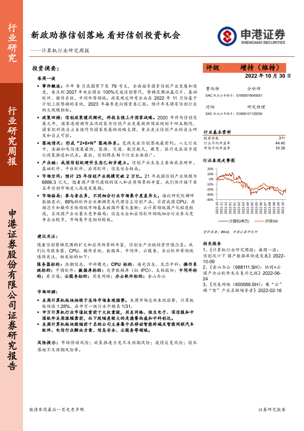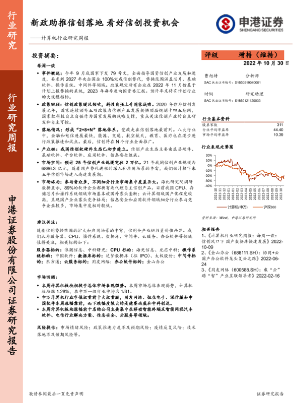 【申港证券】【20221030】计算机行业研究周报:新政助推信创落地 看好信创投资机会-13页