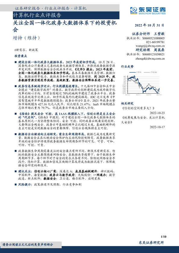 【东吴证券】【20221031】计算机行业点评报告:关注全国一体化政务大数据体系下的投资机会-10页