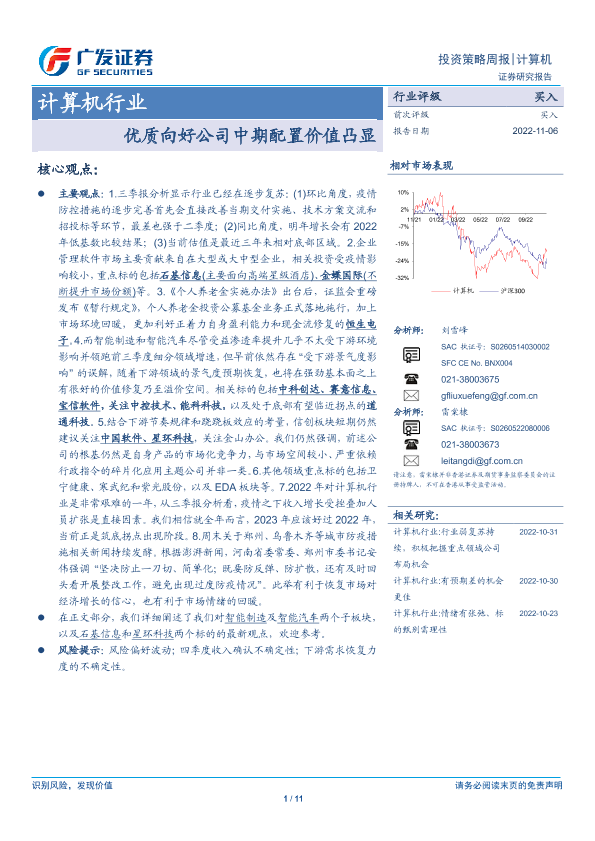 【广发证券】【20221106】20221106-广发证券-计算机行业投资策略周报:优质向好公司中期配置价值凸显-11页