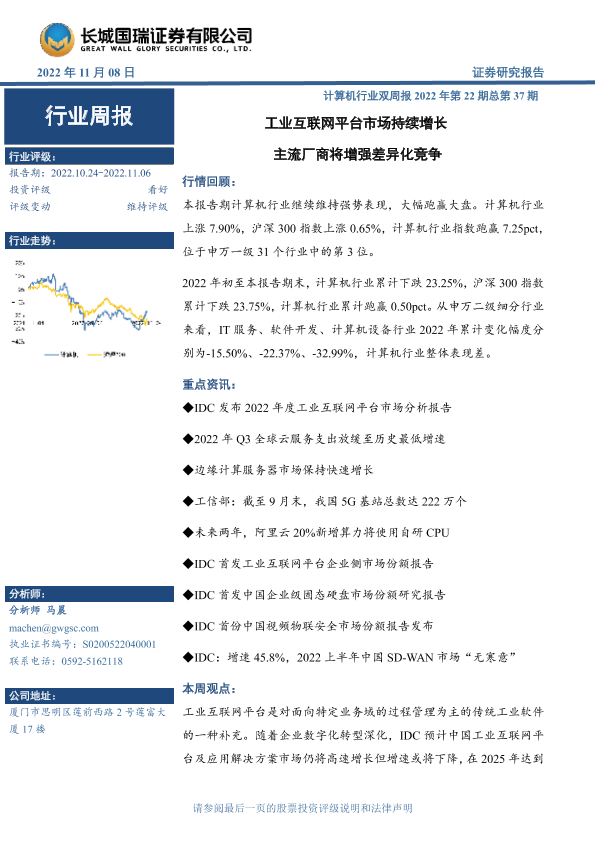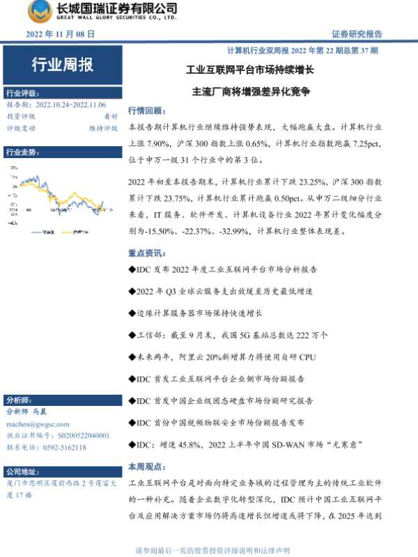 【长城国瑞证券】【20221108】计算机行业双周报2022年第22期总第37期:工业互联网平台市场持续增长 主流厂商将增强差异化竞争-13页