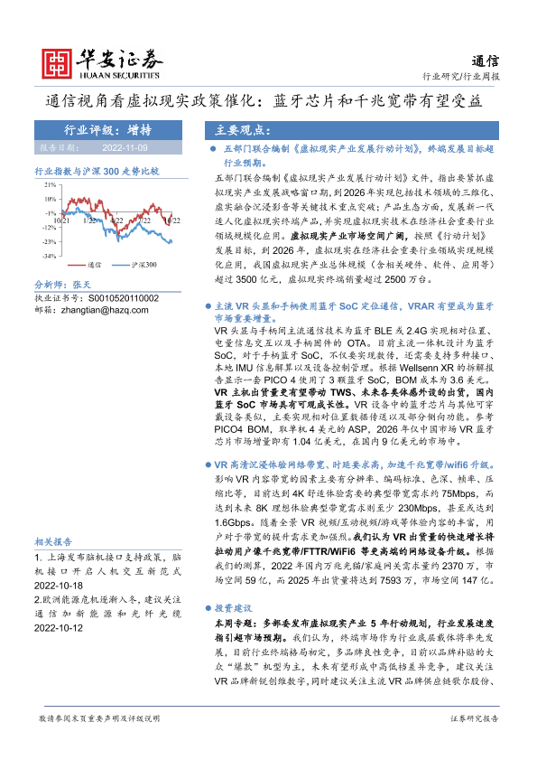 【华安证券】【20221109】通信视角看虚拟现实政策催化:蓝牙芯片和千兆宽带有望受益-20页