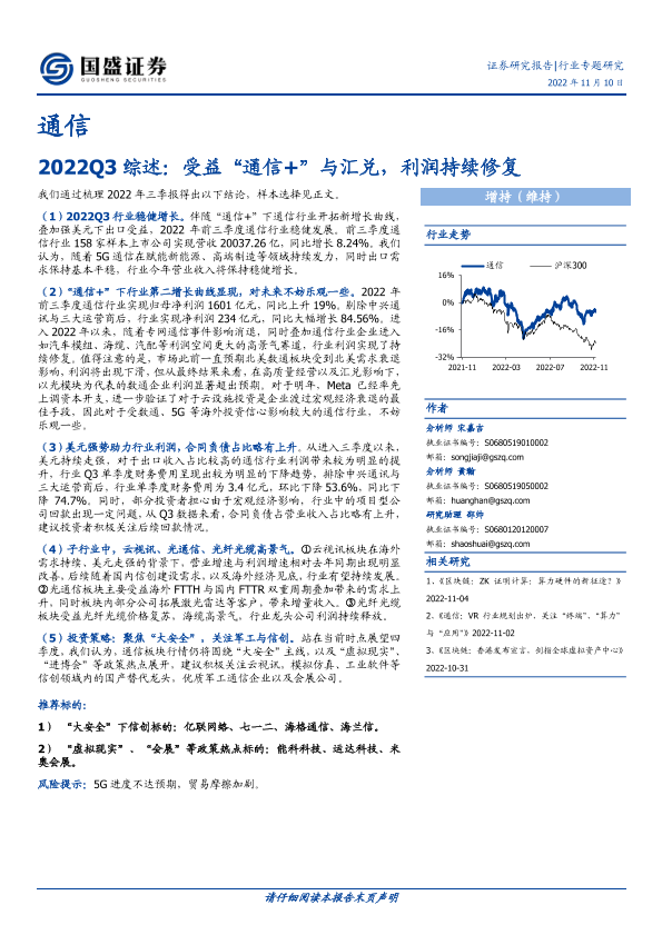 【国盛证券】【20221110】通信2022Q3综述:受益“通信+”与汇兑,利润持续修复-18页