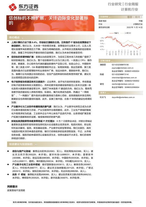 【东方证券】【20221114】20221114-东方证券-计算机行业周报:信创标的不断扩展,关注边际变化显著标的-10页