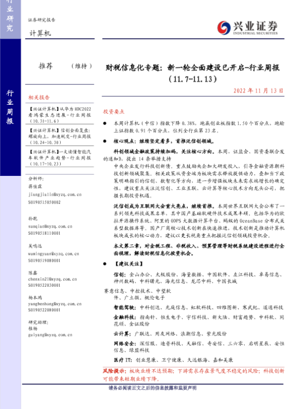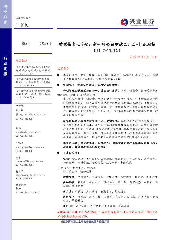 【兴业证券】【20221113】财税信息化专题:新一轮全面建设已开启-行业周报 (11.7-11.13)-32页