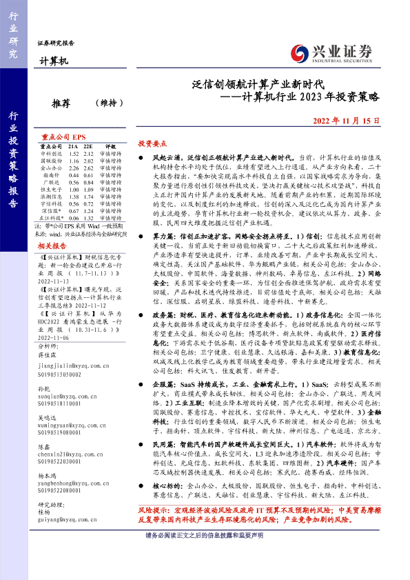 【兴业证券】【20221115】泛信创领航计算产业新时代 ——计算机行业 2023年投资策略-45页