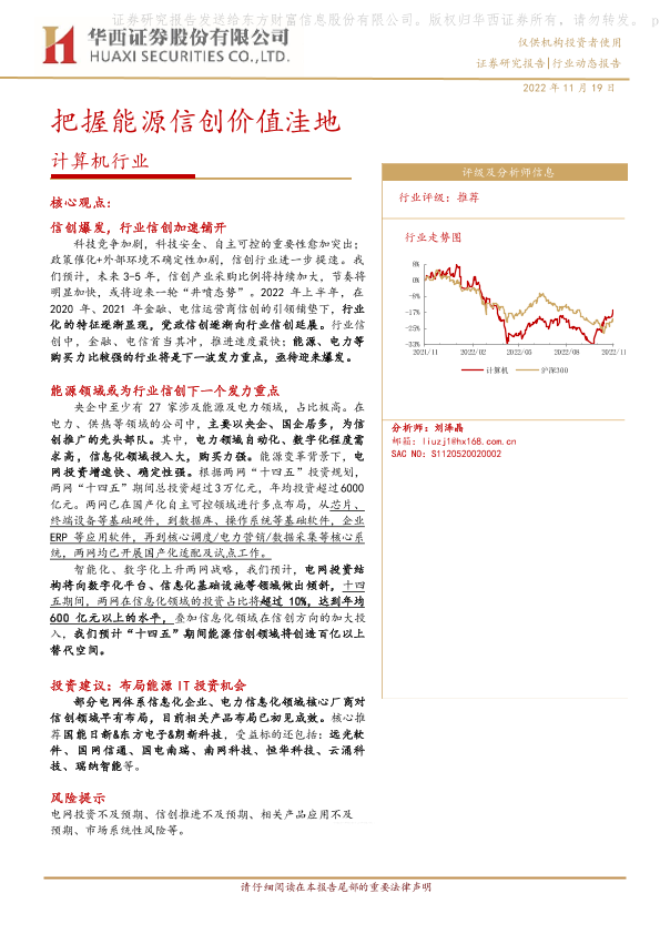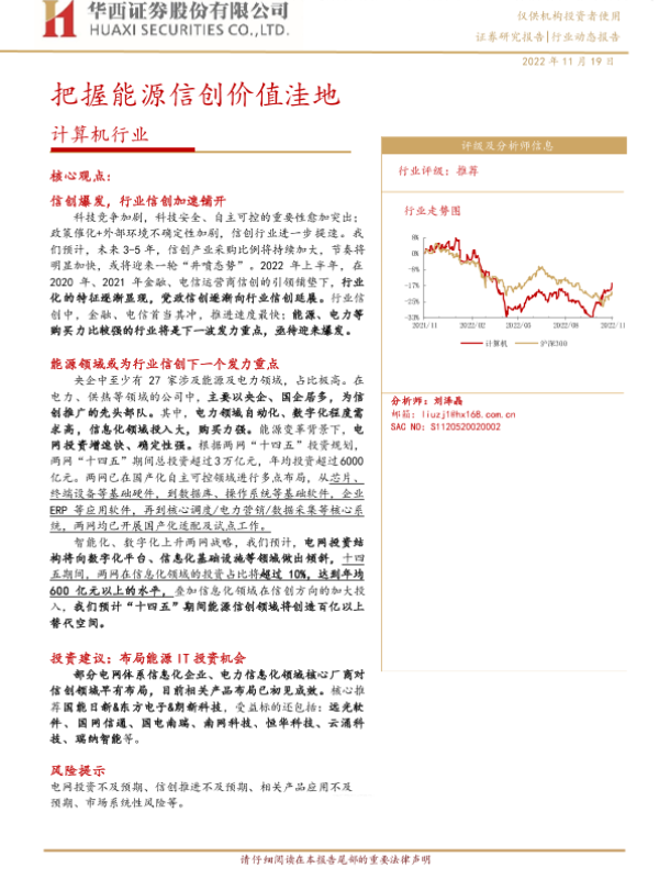 【华西证券】【20221119】计算机行业:把握能源信创价值洼地-13页