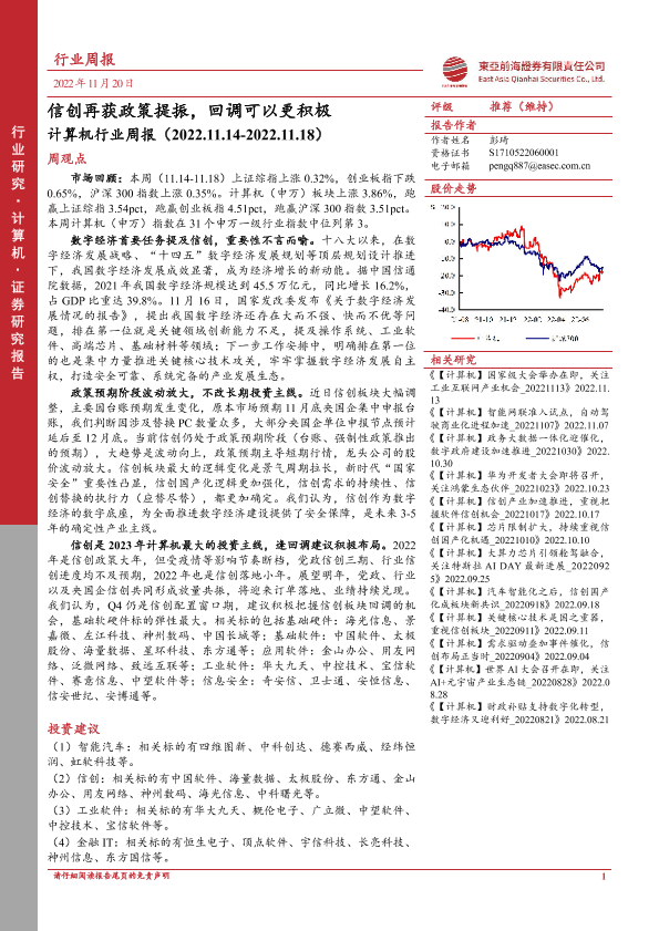 【东亚前海证券】【20221120】计算机行业周报:信创再获政策提振,回调可以更积极-17页