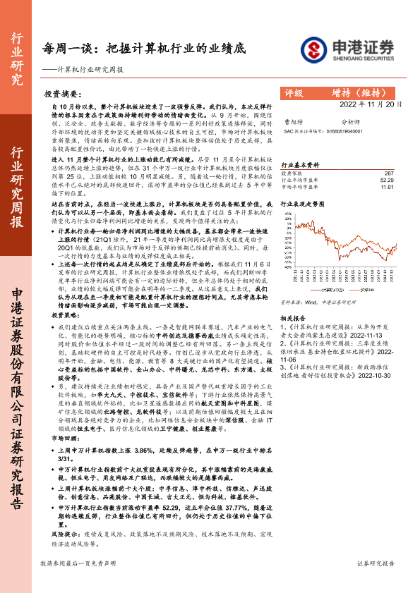 【申港证券】【20221120】20221120-申港证券-计算机行业研究周报:每周一谈:把握计算机行业的业绩底-10页