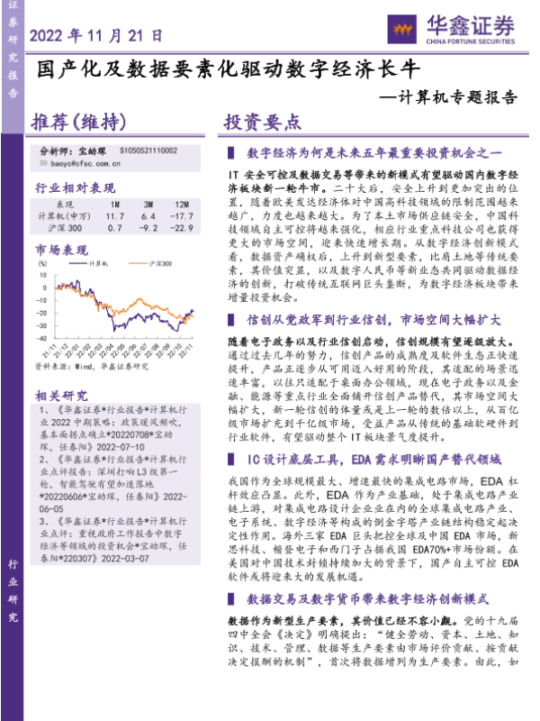 【华鑫证券】【20221121】国产化及数据要素化驱动数字经济长牛—计算机专题报告-26页