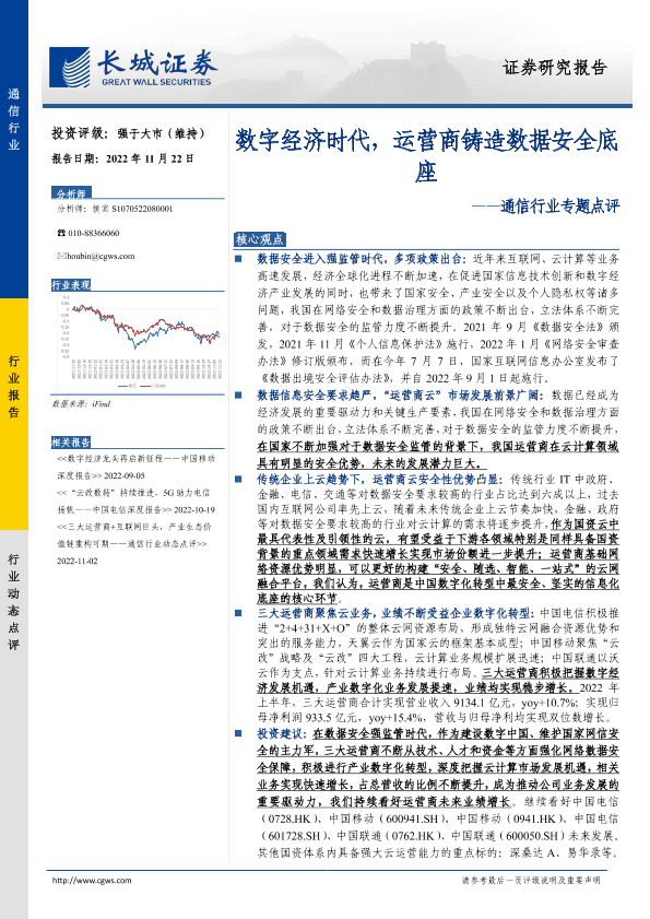 【长城证券】【20221122】数字经济时代,运营商铸造数据安全底座-12页