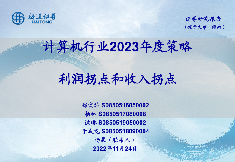 【海通证券】【20221124】计算机行业2023年度策略:利润拐点和收入拐点-27页