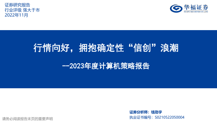 【华福证券】【202211】2023年度计算机策略报告:行情向好,拥抱确定性“信创”浪潮-24页