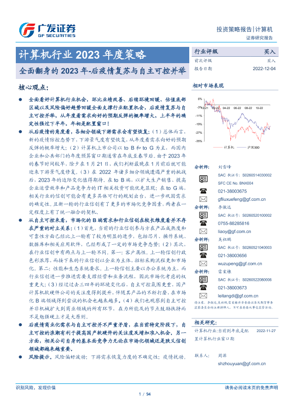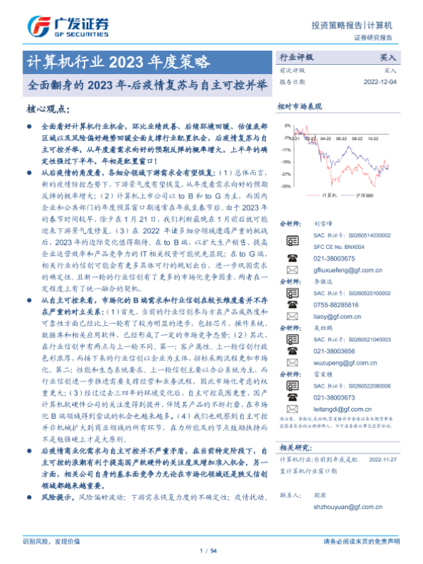 【广发证券】【20221204】计算机行业2023年度策略:全面翻身的2023年-后疫情复苏与自主可控并举-94页