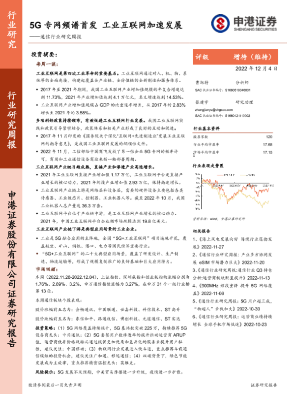 【申港证券】【20221204】5G专网频谱首发 工业互联网加速发展-17页