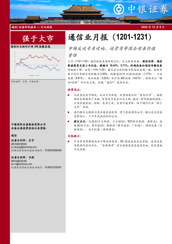 【中银证券】【20221209】通信业月报:市场反攻号角吹响,运营商等国企迎来价值重估-17页