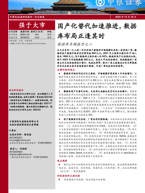 【中银证券】【20221216】20221216-中银证券-数据库专题报告之二:国产化替代加速推进,数据库布局正逢其时-40页