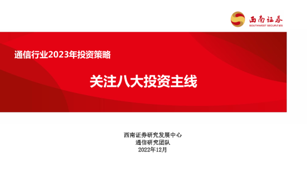 【西南证券】【202212】通信行业2023年投资策略:关注八大投资主线-48页