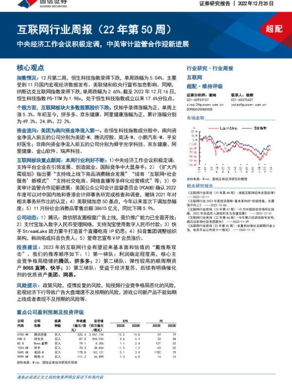 【国信证券】【20221225】20221225-国信证券-互联网行业周报(22年第50周):中央经济工作会议积极定调,中美审计监管合作迎新进展-13页