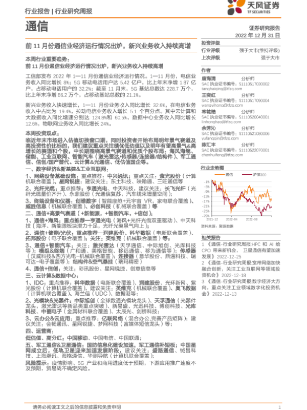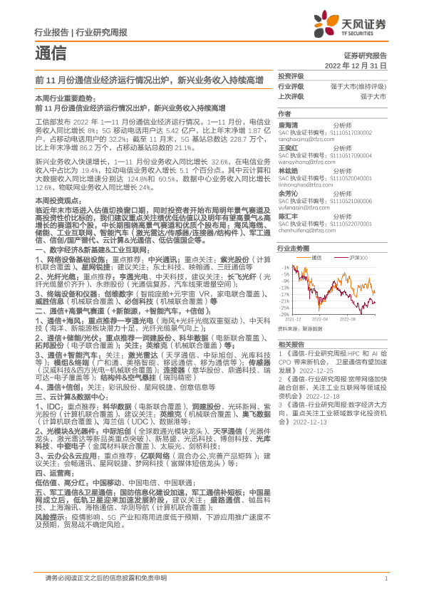 【天风证券】【20221231】20221231-天风证券-通信行业研究周报:前11月份通信业经济运行情况出炉,新兴业务收入持续高增-11页