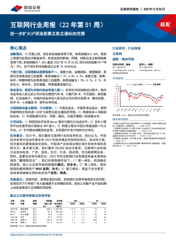 【国信证券】【20221230】互联网行业周报(22年第51周):进一步扩大沪深港股票互联互通标的范围-12页