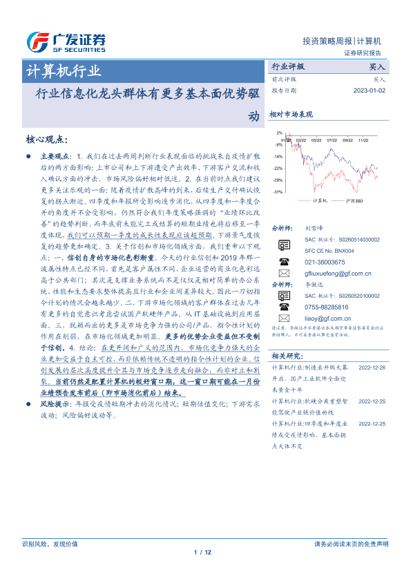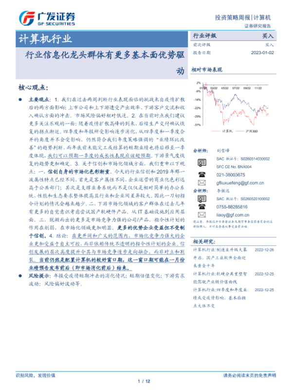 【广发证券】【20230102】20230102-广发证券-计算机行业投资策略周报:行业信息化龙头群体有更多基本面优势驱动-12页