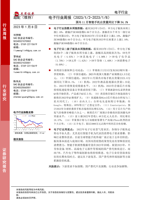【东莞证券】【20230108】电子行业周报:国内11月智能手机出货量同比下降34.1%-11页
