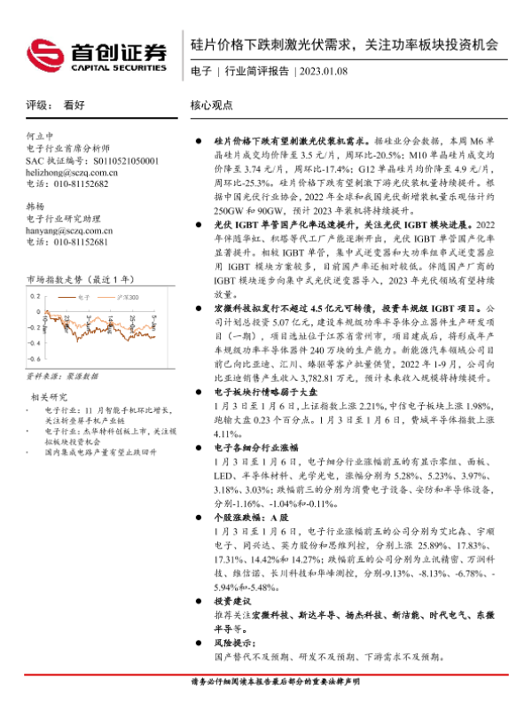 【首创证券】【20230108】20230108-首创证券-电子行业简评报告:硅片价格下跌刺激光伏需求,关注功率板块投资机会-10页