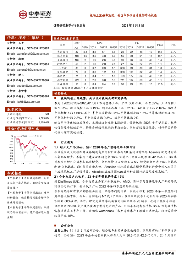 【中泰证券】【20230108】20230108-中泰证券-电子行业周报:板块上涨趋势延续,关注半导体设计底部布局机遇-13页