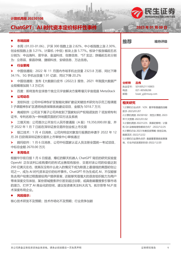 【民生证券】【20230108】20230108-民生证券-计算机行业周报:ChatGPT:AI时代资本定价标杆性事件-23页