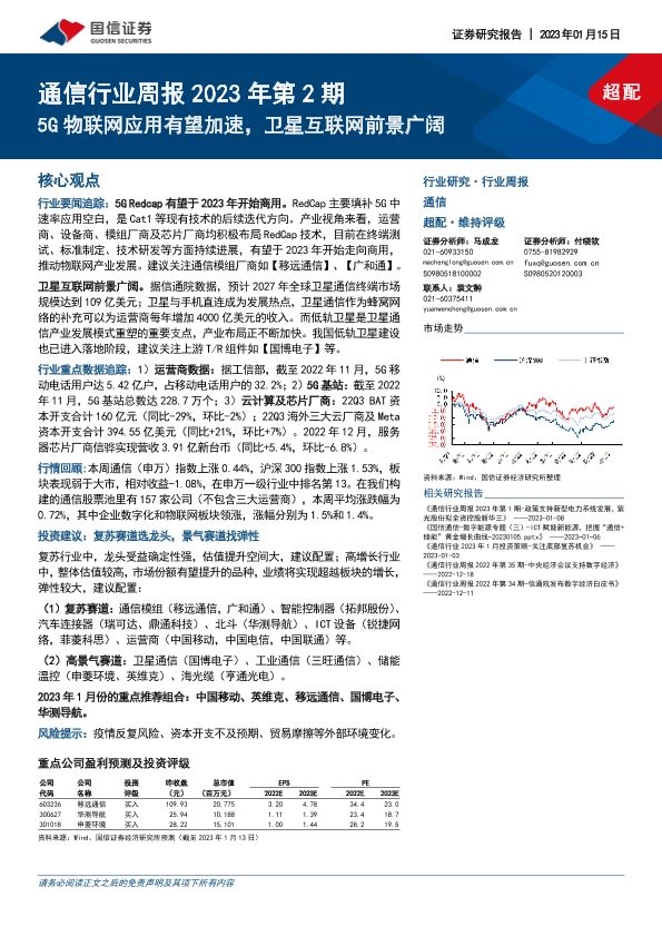 【国信证券】【20230115】通信行业周报2023年第2期:5G物联网应用有望加速,卫星互联网前景广阔-27页