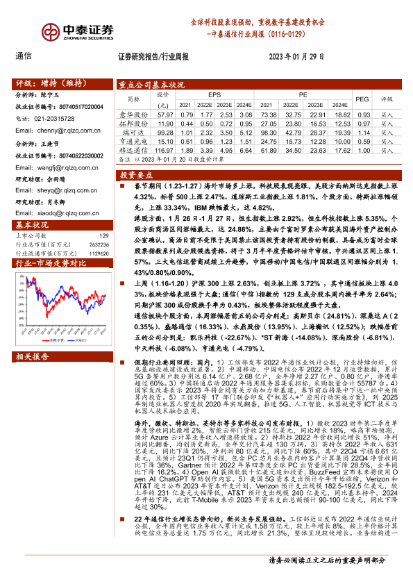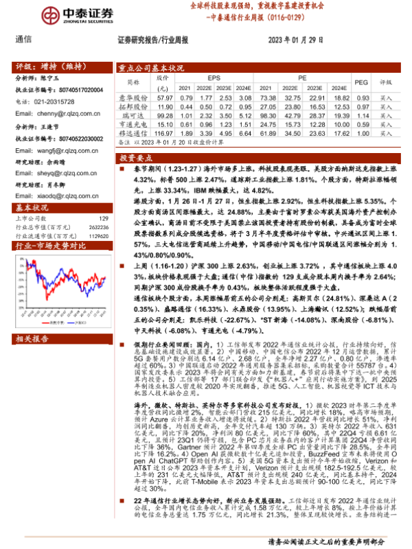 【中泰证券】【20230129】中泰证券-中泰通信行业周报:全球科技股表现强劲,重视数字基建投资机会-23页