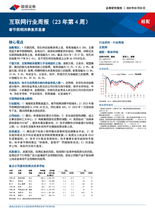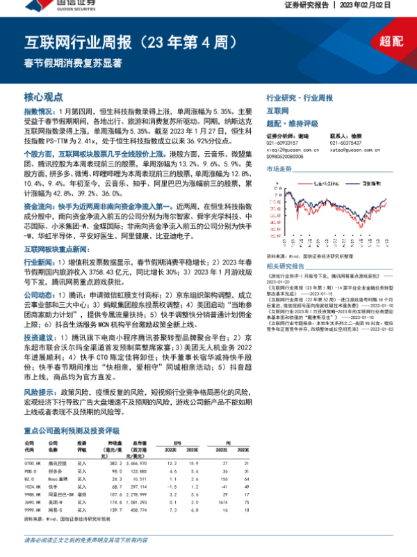 【国信证券】【20230202】20230202-国信证券-互联网行业周报(23年第4周):春节假期消费复苏显著-14页