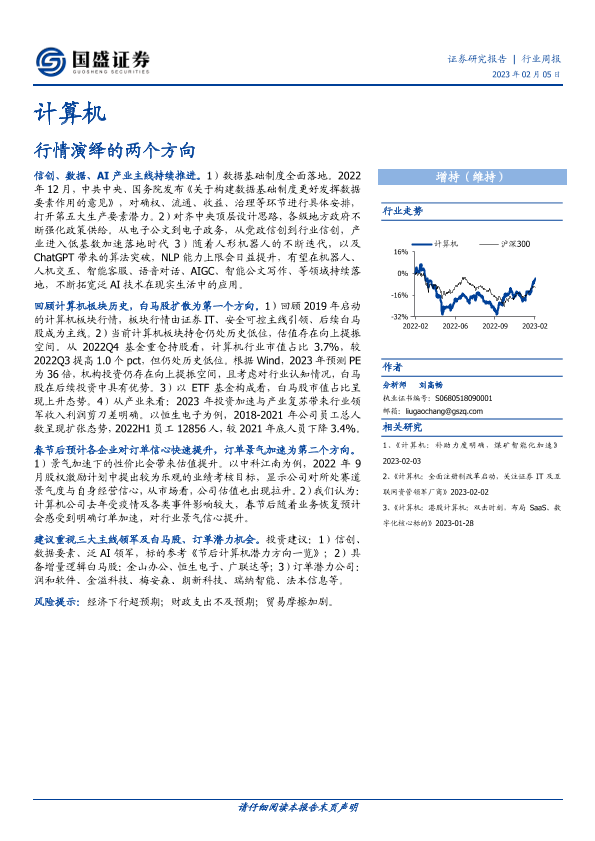 【国盛证券】【20230205】20230205-国盛证券-计算机行业周报:行情演绎的两个方向-11页