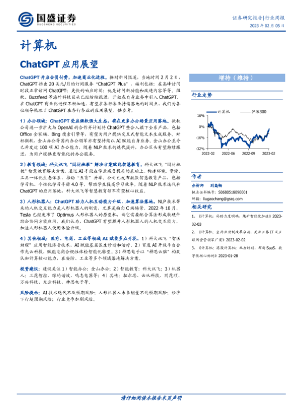 【国盛证券】【20230205】计算机行业周报:ChatGPT应用展望-15页