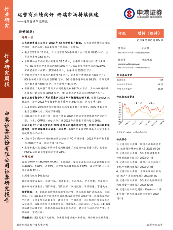 【申港证券】【20230205】运营商业绩向好 终端市场持续低迷-12页