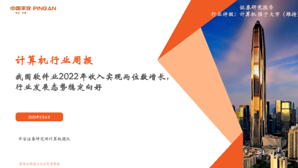 【平安证券】【20230206】20230206-平安证券-计算机行业周报:我国软件业2022年收入实现两位数增长,行业发展态势稳定向好-10页