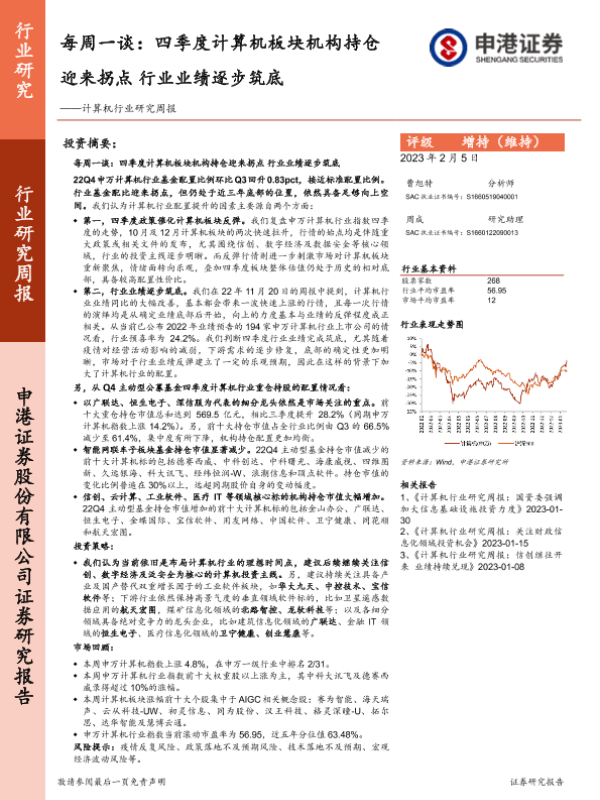 【申港证券】【20230205】20230205-申港证券-计算机行业研究周报:每周一谈:四季度计算机板块机构持仓迎来拐点 行业业绩逐步筑底-13页