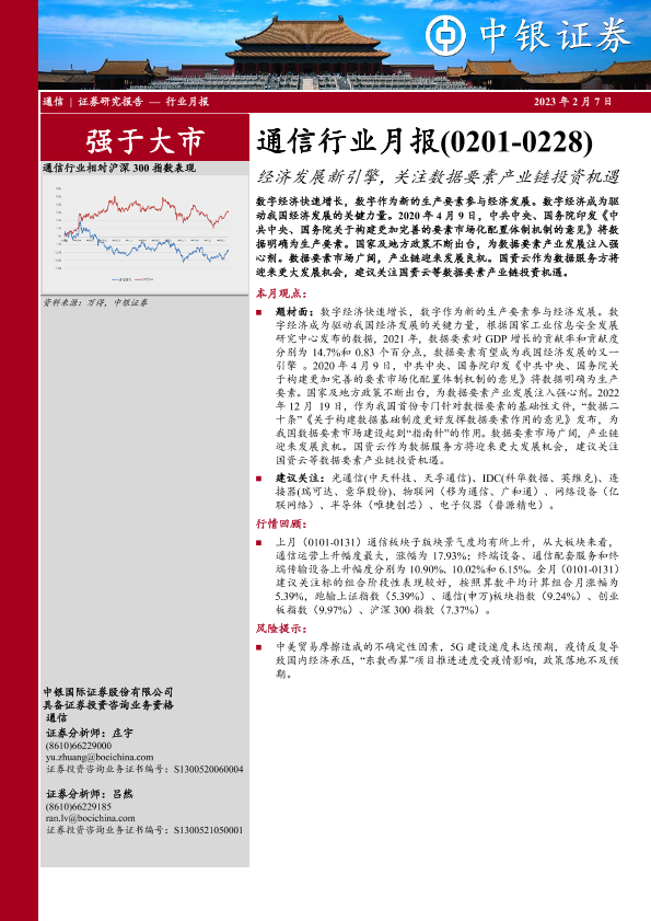 【中银证券】【20230207】20230207-中银证券-通信行业月报:经济发展新引擎,关注数据要素产业链投资机遇-25页