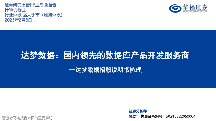 【华福证券】【20230208】达梦数据:国内领先的数据库产品开发服务商-40页
