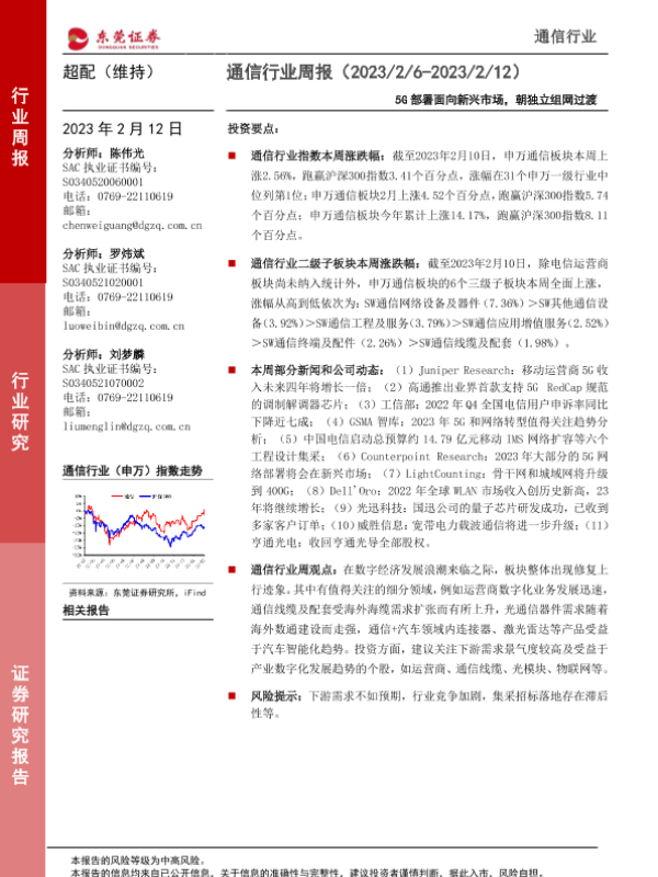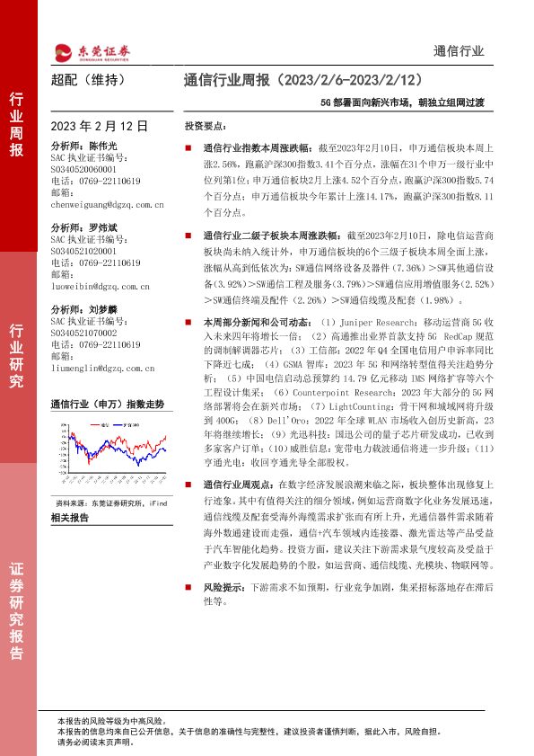 【东莞证券】【20230212】通信行业周报:5G部署面向新兴市场,朝独立组网过渡-12页