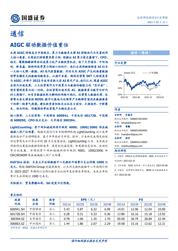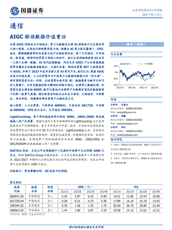 【国盛证券】【20230212】通信行业周报:AIGC驱动数据价值重估-13页