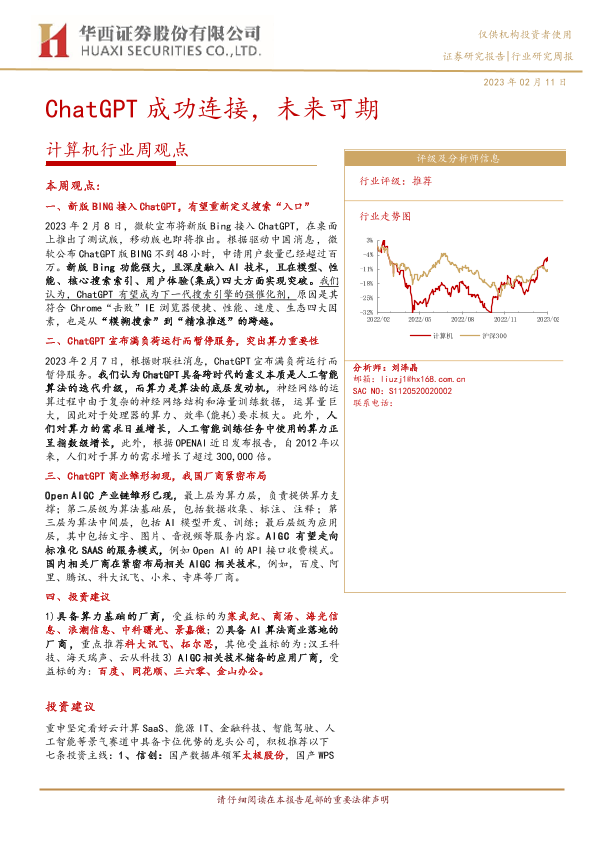 【华西证券】【20230211】20230211-华西证券-计算机行业周观点:ChatGPT成功连接,未来可期-33页