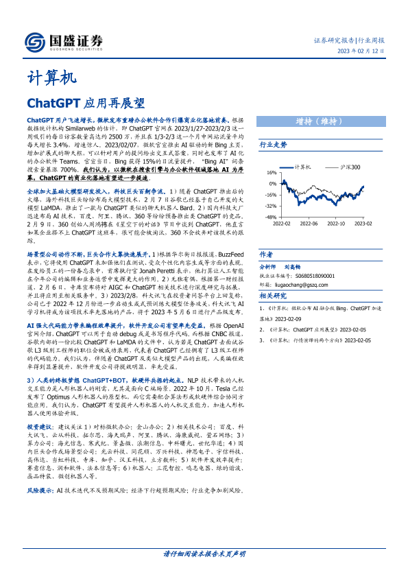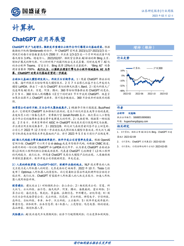 【国盛证券】【20230212】20230212-国盛证券-计算机行业周报:ChatGPT应用再展望-14页