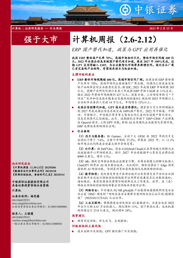 【中银证券】【20230213】20230213-中银证券-计算机周报:ERP国产替代加速,政策与GPT应用再催化-15页