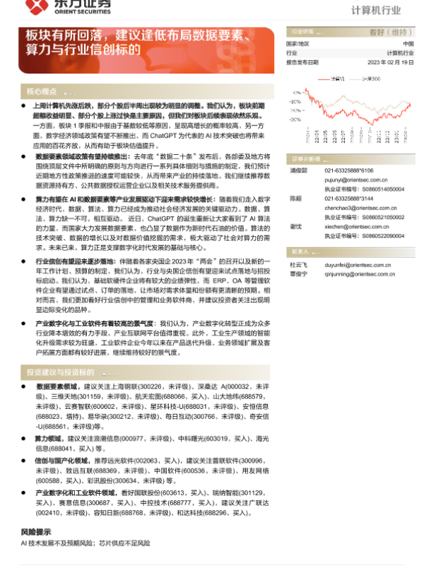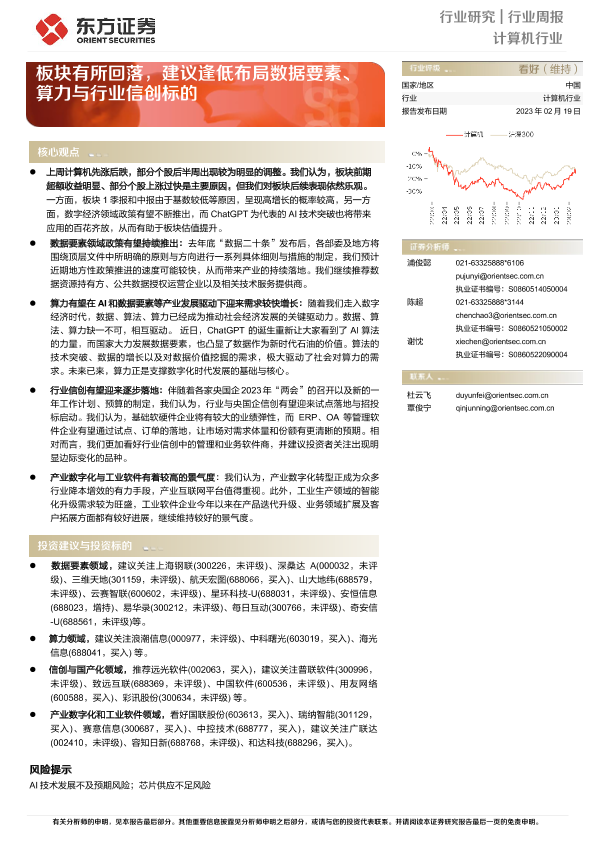 【东方证券】【20230219】20230219-东方证券-计算机行业行业周报:板块有所回落,建议逢低布局数据要素、算力与行业信创标的-11页