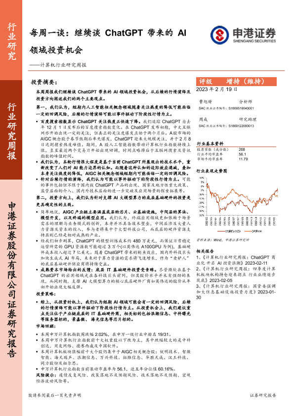 【申港证券】【20230219】20230219-申港证券-计算机行业研究周报:每周一谈:继续谈ChatGPT带来的AI领域投资机会-11页